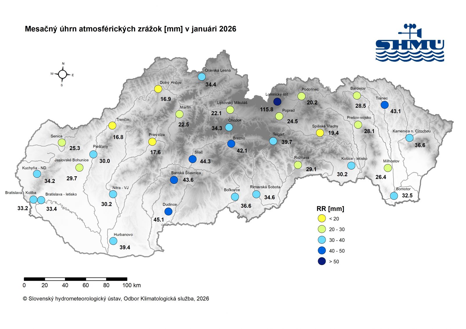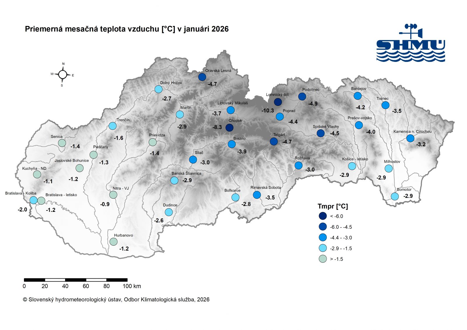 Toto zhodnotenie vychádza z operatívnych údajov, ktoré boli dostupné hneď po skončení mesiaca 2.2.2026. Podrobnejšie, konečné zhodnotenie bude uverejnené na webovej stránke SHMÚ koncom mesiaca február 2026.