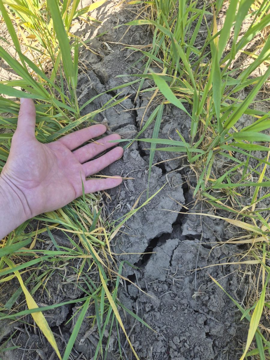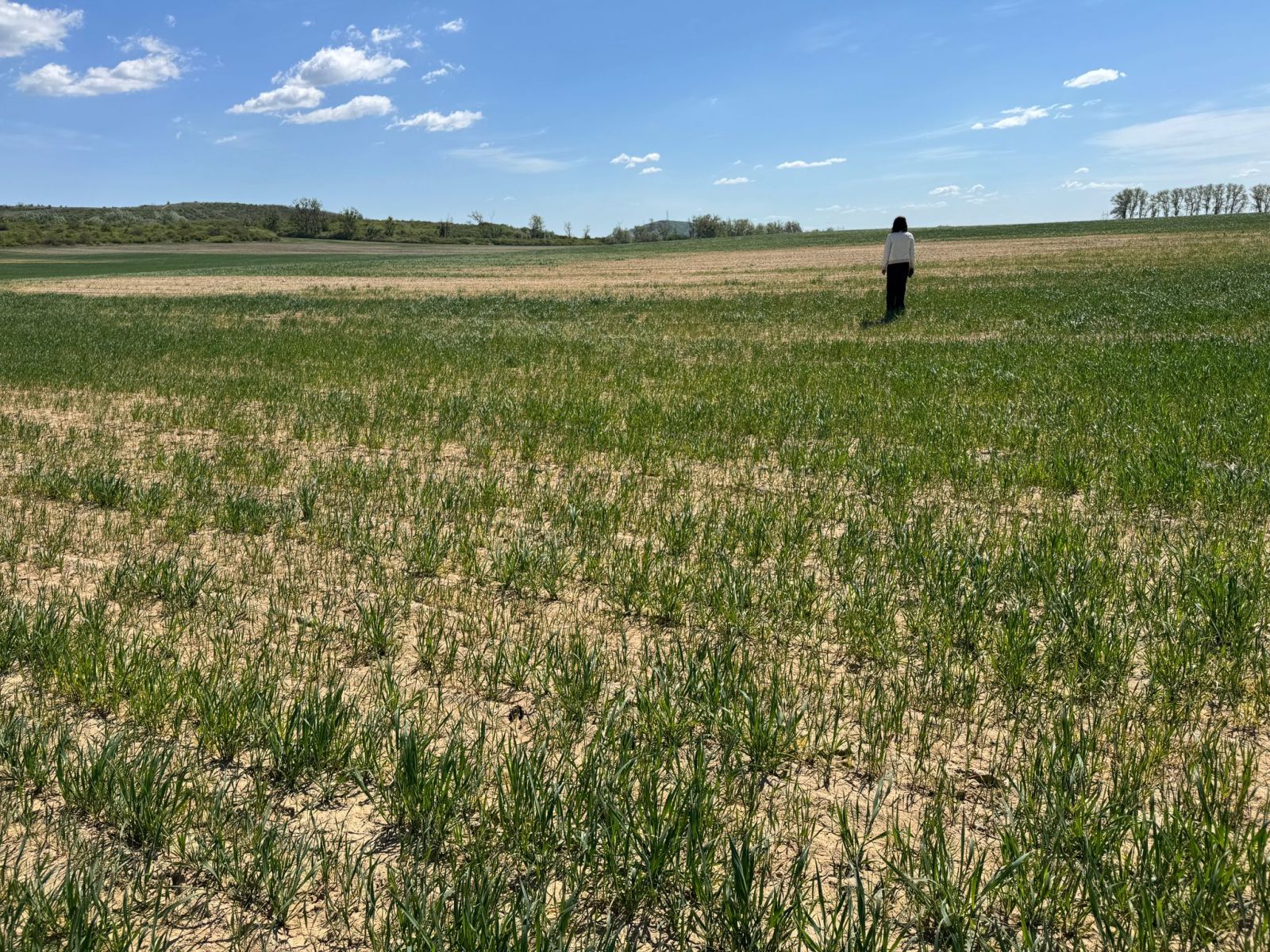 Rovnako trpia na Východoslovenskej nížine aj porasty pšenice ozimnej (Obr. 2). Tá v dôsledku sucha nevytvára odnože. Evidentné sú aj prejavy sucha na pôde, ktorá je výrazne popraskaná (Obr. 3). Zhoršený rast ozimín bol hlásený aj zo severnejších lokalít na východe Slovenska, konkrétne z okresov Spišská Nová Ves a Kežmarok. V týchto lokalitách pozorovali aj slabú kondíciu tráv a lucerny, zatiaľ na prekvapenie sa držia ďateliny.
