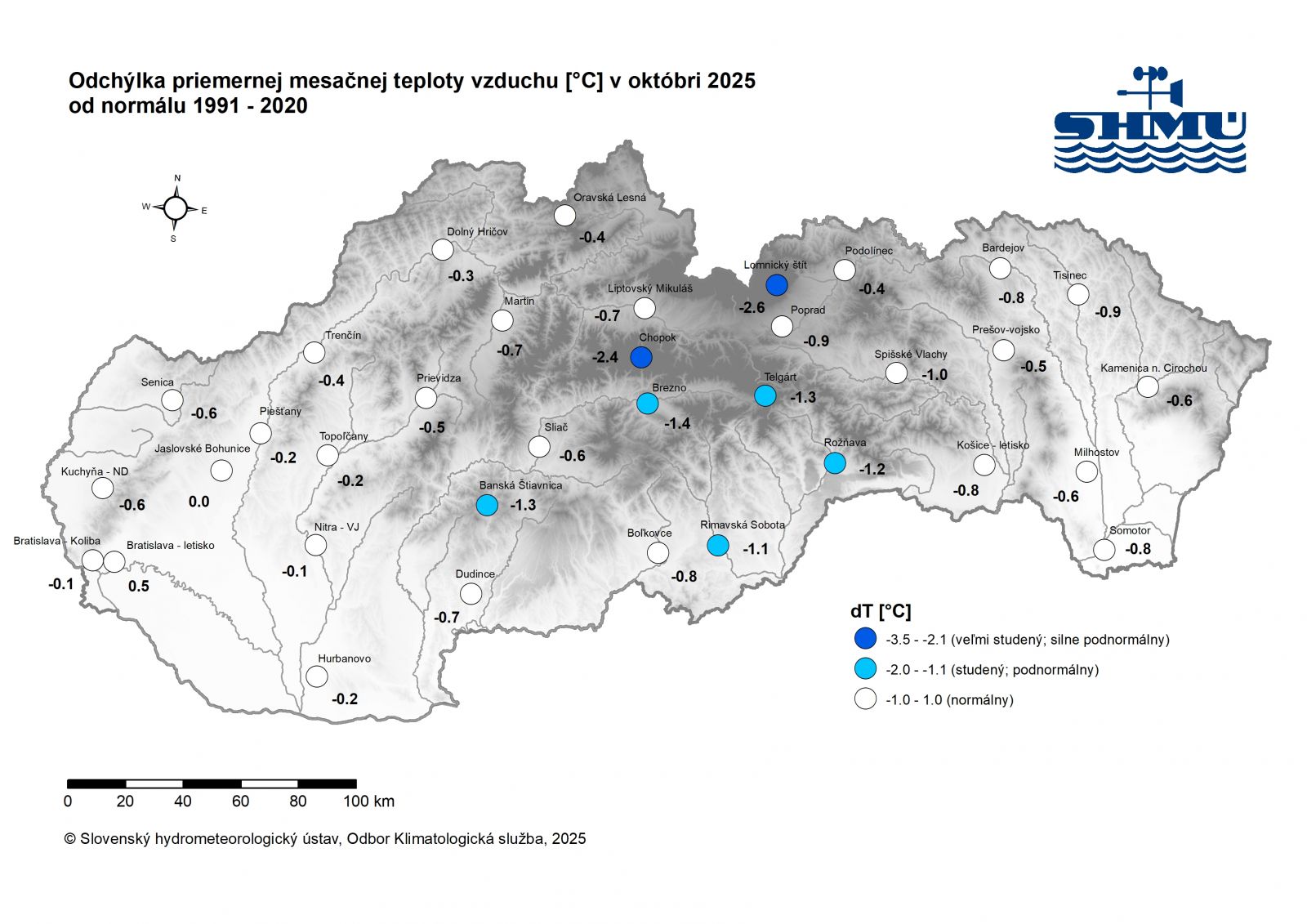 Toto zhodnotenie vychádza z operatívnych údajov, ktoré boli dostupné hneď po skončení mesiaca 3.11.2025. Bližšie zhodnotenie bude v priebehu novembra na stránke SHMÚ.