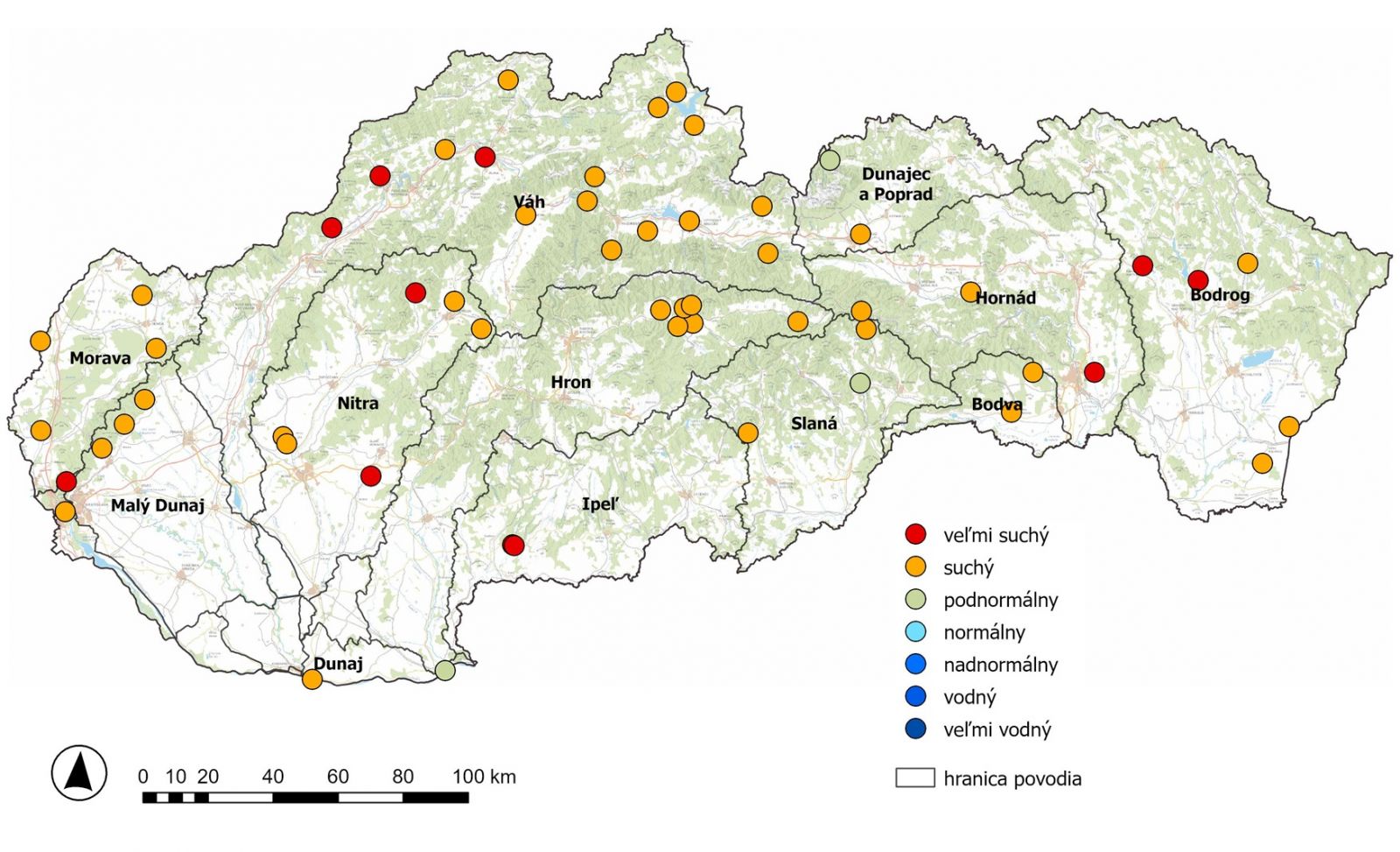 V prevažnej časti hodnotených VS bola vodnosť roka na úrovni suchého až veľmi suchého roka, len v 5 % vybraných VS bol hydrologický rok vyhodnotený ako podnormálny (vo VS Štúrovo – Dunaj v povodí Dunaja, vo VS Štítnik – Štítnik v povodí Slanej a vo VS Žďiar-Podspády – Javorinka v povodí Dunajca a Popradu).