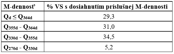 Tab. 5 M-dennosť minimálnych priemerných denných prietokov v hodnotených staniciach v HR 2025