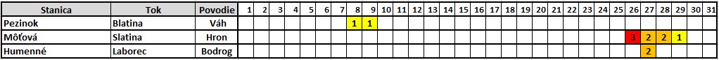 Tab.  1 Zaznamenané SPA na monitorovaných vodomerných staniciach počas januára 2026